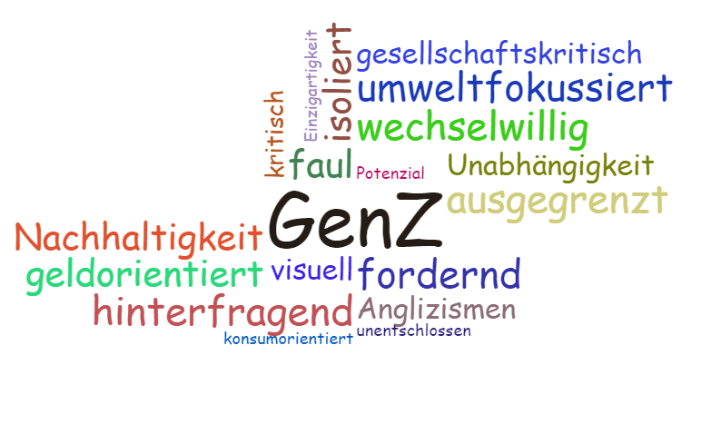 In der nebenstehenden Grafik finden Sie einige Eigenschaften und Schlagworte, die der GenZ zugeschrieben werden.